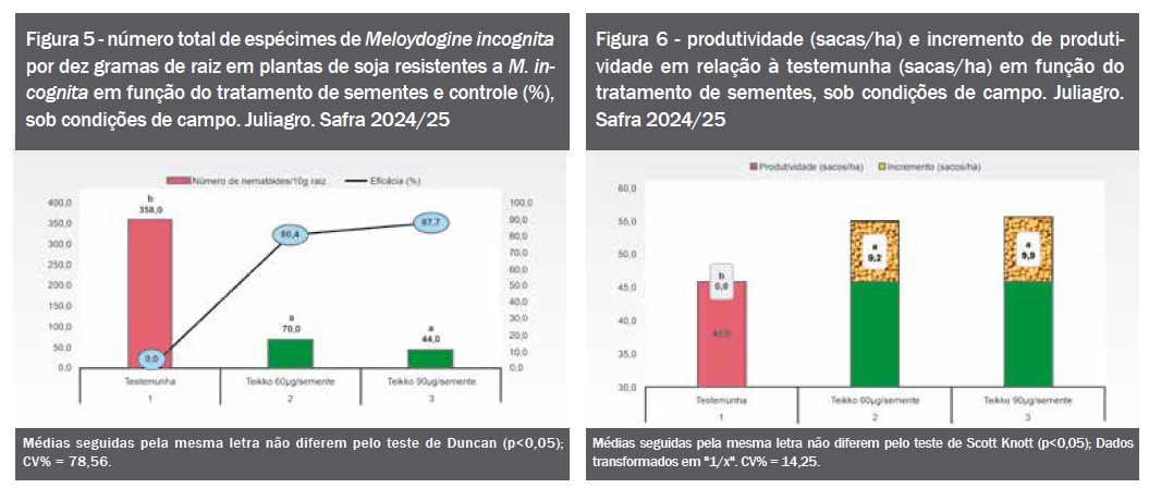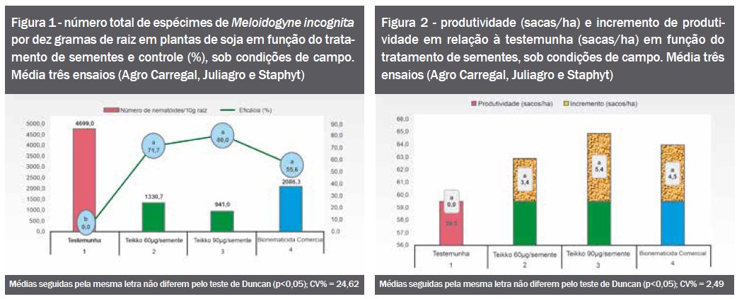 Além disso, os tratamentos com Teikko™ apresentaram eficácia numericamente superior à do bionematicida comercial utilizado