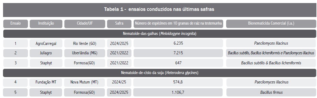 de Meloidogyne incognita e Heterodera glycines; é destaque a sua capacidade de atuar