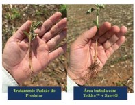 Figura 3. Efeito do uso de TeikkoTM + Saori® na sanidade de plântula de soja em área com ataque de Fusarium spp., cultivar Guepardo, Unaí (MG)
